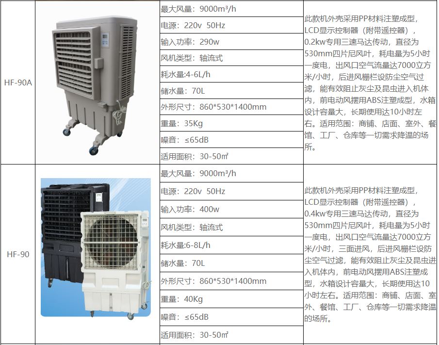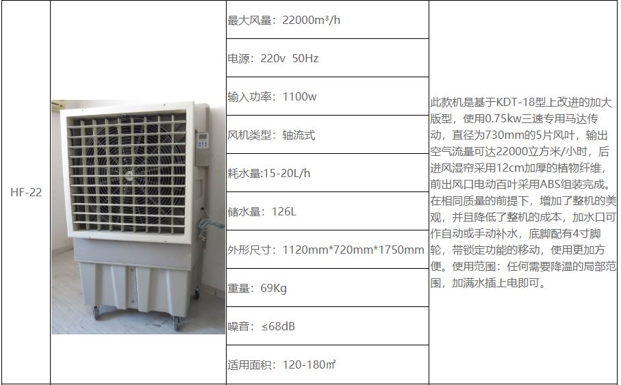 • HF-70A【基本介绍】: 移动环保空调适应用于大型餐厅、会议室、网吧、商场,工厂大型娱乐场所等需要通风降温的地方。移动环保空调可以通风降温换气、净化空气、节能环保、加湿空气、调解温度。三挡风速,三种风格,风感更轻柔,风感更舒服,吹出来的风舒适健康,湿润不干燥,使用方便220电源,哪里需要哪里推。浩风移动环保空调型号众多,无论是家用还是工业都有值得您选择的那款。